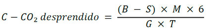 Donde: B = volumen de HCl en el control; S = volumen de HCl empleado en la valoración; M = molaridad de HCl; G = masa de suelo (g); T = tiempo de incubación (días) 12,26.