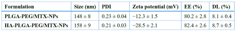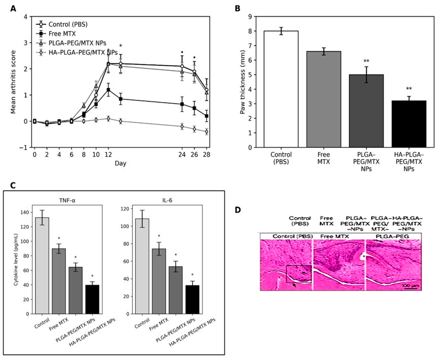 nanoparticles (HA-PLGA-PEG/MTX NPs) to enhance targeting of inflamed joints via