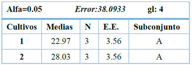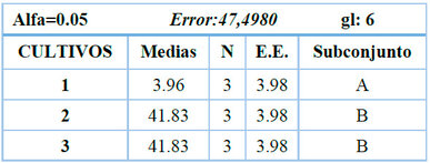 Tabla 1. Prueba de Duncan para la variable densidad celular (cel·mL-1).