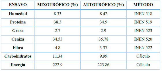 Tabla 13. Análisis proximal de los cultivos mixotrófico y autotrófico.