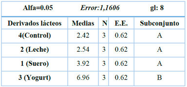 Tabla 7. Prueba de Duncan para derivados lácteos.