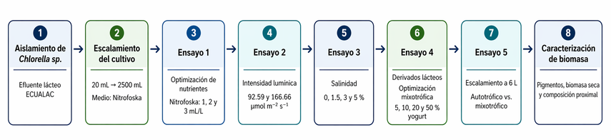 Figura 1. Esquema experimental del proceso de cultivo y caracterización de Chlorella sp.