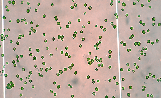 Figura 2. Observación al microscopio de la microalga Chlorella sp.