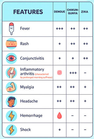 Figure 7. Comparative clinical features of Dengue, Chikungunya, and Zika virus infections.
