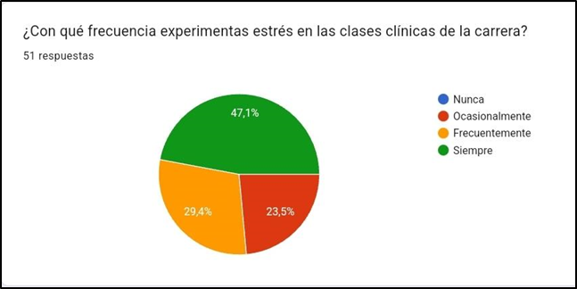 Se presentaron diversas estrategias para el manejo del estrés durante la práctica clínica, obteniendo los siguientes resultados: