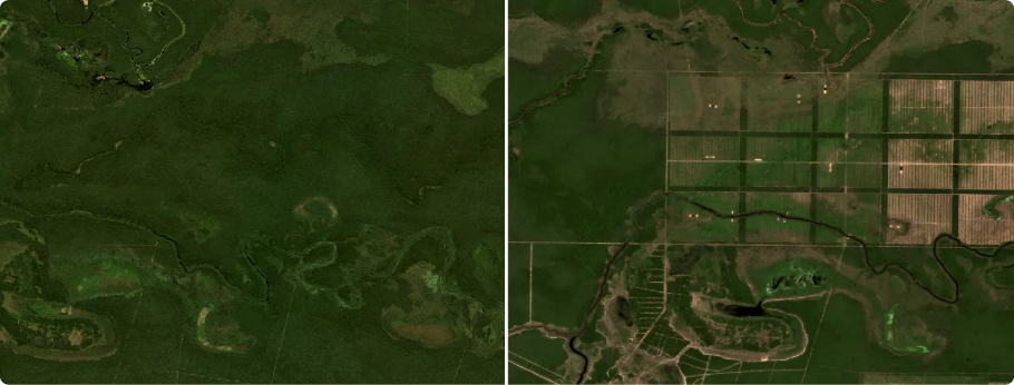 Nota: Ejemplo de imagen satelital, antes y después de deforestación (Mapular, 2024)