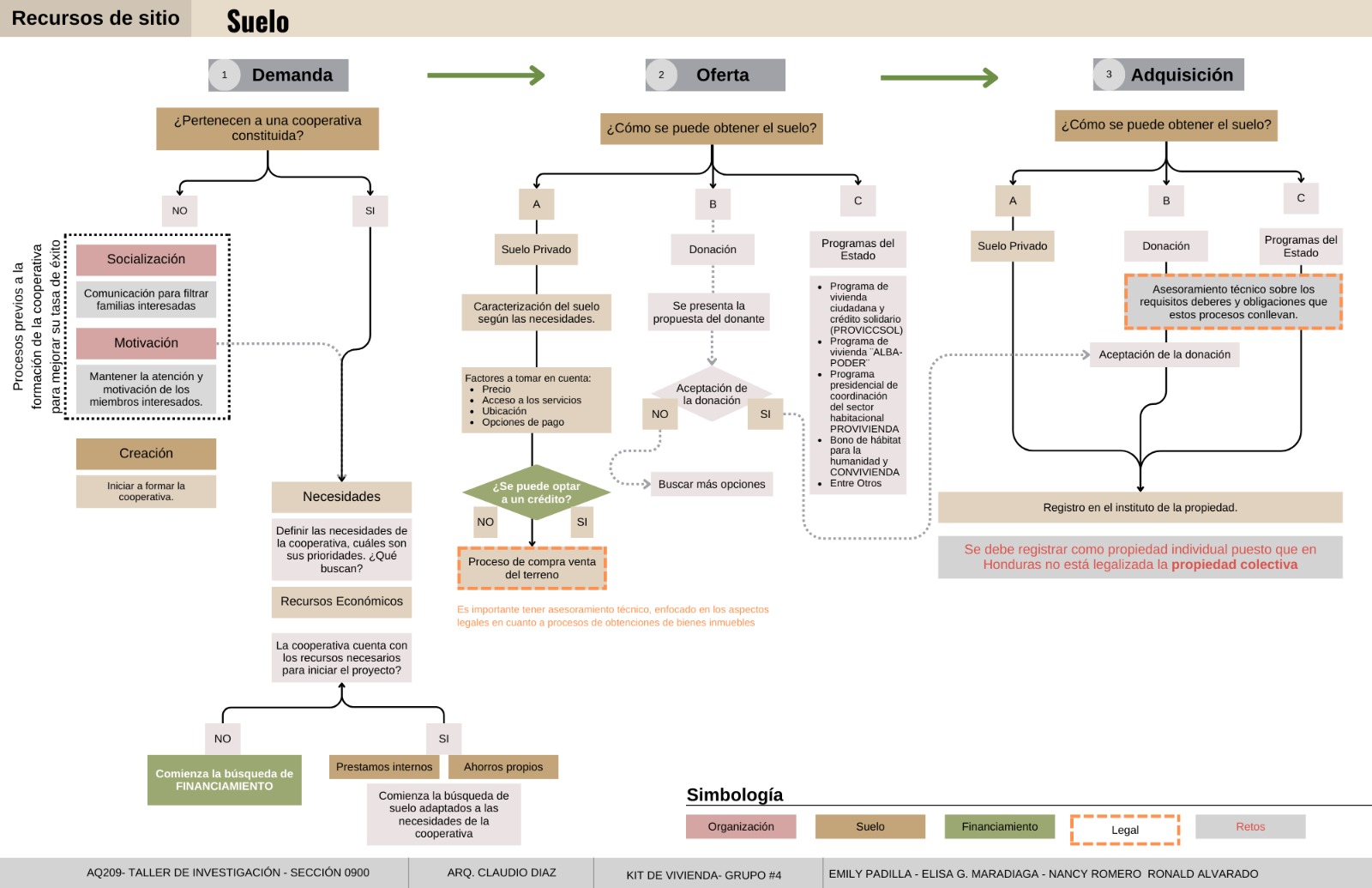 La investigación se realizó con una metodología mixta que combinó revisión de fuentes secundarias y el desarrollo de entrevistas a actores claves para la obtención de información primaria que dé cuenta del paso a paso de la experiencia hondureña del modelo CVAM. Se incluyeron entrevistas a miembros de COVIMARL y a representantes de la Fundación San Alonso Rodríguez, quien apoya procesos de autogestión con sistemas constructivos en tierra. Se diseñó una matriz de análisis con variables definidas a partir de las dos primeras fases del proceso de autogestión habitacional: organización y/o promoción donde se capacita a las personas cooperativistas y se construyen los acuerdos base de su cooperativa, y la fase de planificación, misma que incluye la búsqueda de suelo con servicios, de financiamiento (público y privado), gestiones institucionales (frente a agentes externos a la cooperativa) para diferentes tipos de apoyo. Se realizó un análisis comparativo de la experiencia hondureña con las de otros países revisados (Uruguay, El Salvador, Bolivia y España) y se logró construir un diagrama de flujo del proceso de autogestión del modelo CVAM adecuado al contexto hondureño.