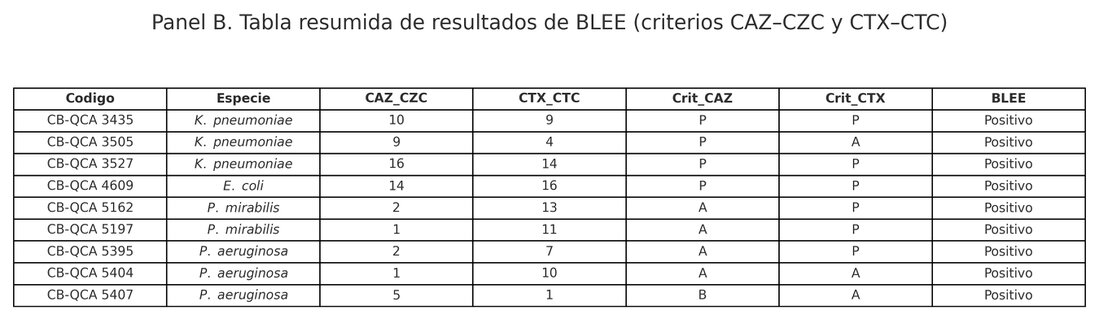 E. β-lactamasas de espectro extendido y factores de virulencia en Escherichia