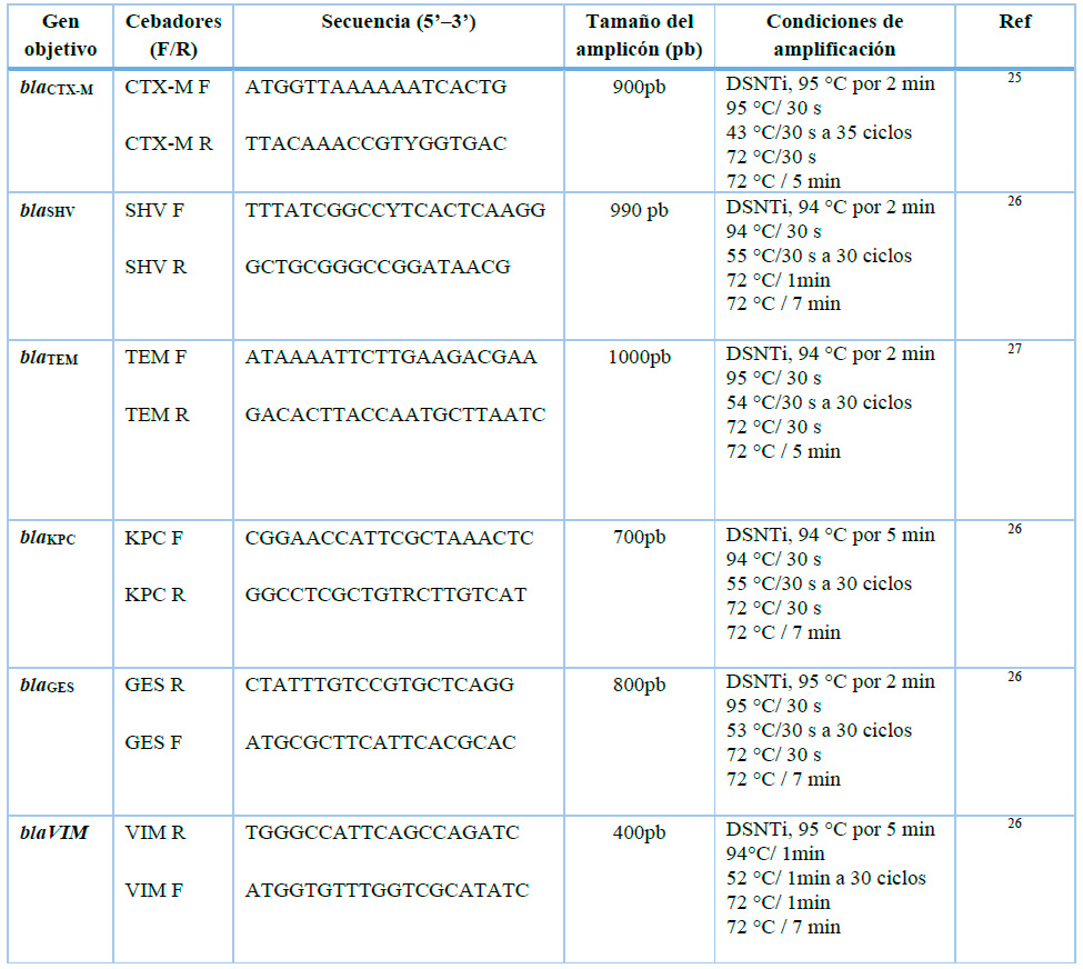 genotípica de los genes de resistencia a betalactámicos y carbapenemasas se